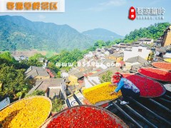 篁嶺當(dāng)?shù)卮迕褡怨啪陀杏弥駮褙伊罆褶r(nóng)作物的習(xí)俗。每年的金秋季節(jié),陽(yáng)光下數(shù)百棟錯(cuò)落的徽派民居,和曬架上五彩繽紛的豐收成果構(gòu)成絢爛的“曬秋”景觀,是不及攝影愛(ài)好者的天堂。篁嶺“曬秋”自此馳名中外。