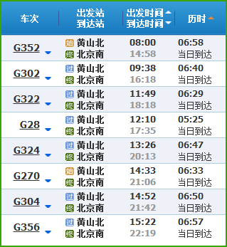 (2)北京到黃山高鐵列車時刻表