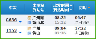 (2)廣州到黃山高鐵列車時(shí)刻表