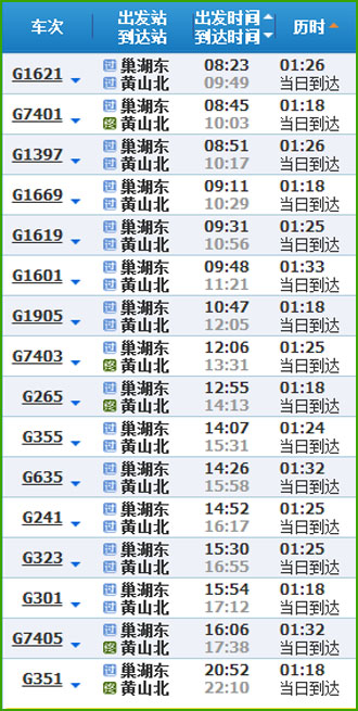 (2)巢湖到黃山高鐵列車時刻表