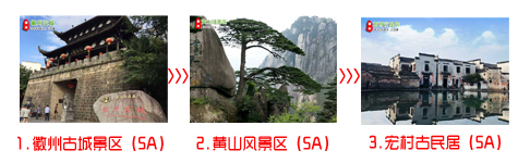 徽州古城(第一日)--->黃山風(fēng)景區(qū)(第二日)--->宏村古民居(第三日)