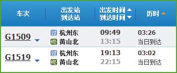 (2)杭州到黃山高鐵列車時刻表