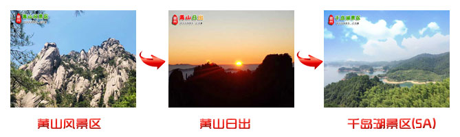 第1天:黃山風(fēng)景區(qū)、西海大峽谷→第2天:黃山日出→第3天:千島湖風(fēng)景區(qū)