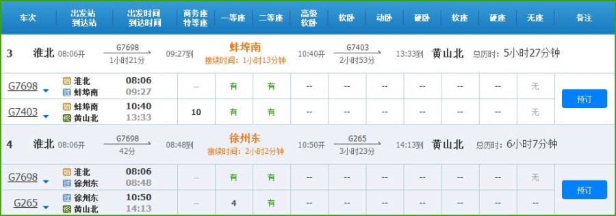 3.10:40左右在蚌埠南站座G7403次高鐵到黃山北站,接續(xù)時(shí)間:1小時(shí)13分鐘