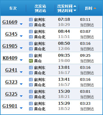 (3)宿州到黃山高鐵列車時(shí)刻表