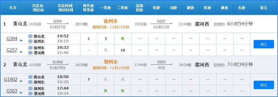 (2)黃山到漯河高鐵列車(chē)時(shí)刻表