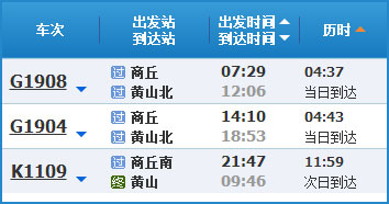(3)黃山到商丘高鐵列車時(shí)刻表: